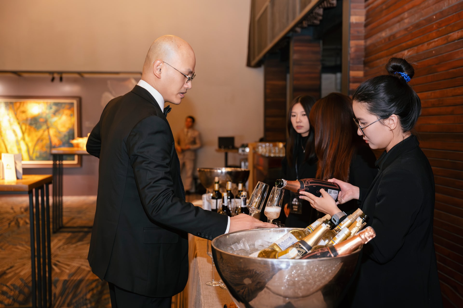 In an exclusive space designed for distinguished guests, the “Sense Your Soul” experience begins with gentle autumn memories captured in oil paintings by artist Trần Thảo Hiền, softly enveloping the room in golden hues. Within that ambiance, a bespoke fragrance evokes tender seasonal reminiscence, while the refined taste of wine curated by Sommelier Huy Nguyễn completes a sensory experience defined by sophistication and style.
